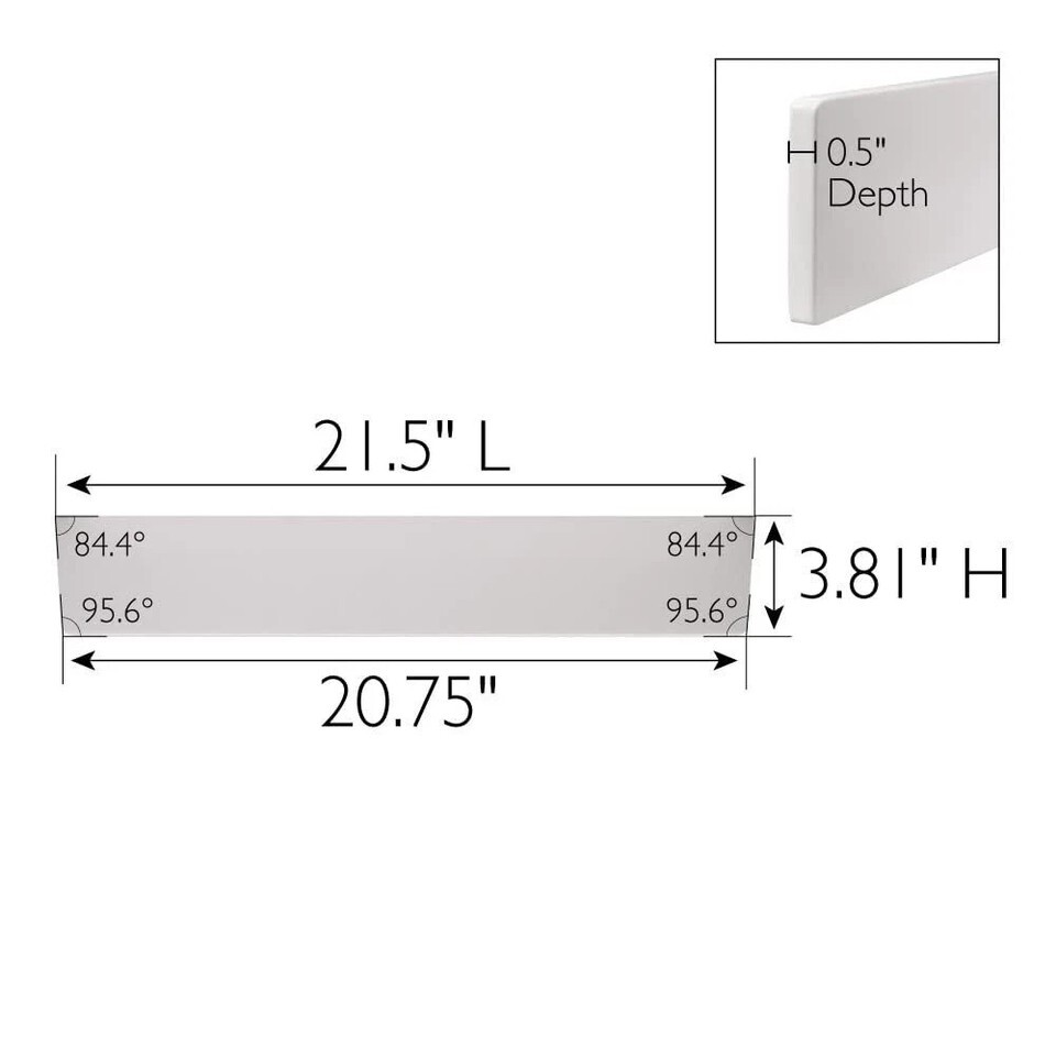 The 550905 Universal 21.5-Inch Marble Side Splash is the perfect complement to lighter, granite tops. The side splash (included with purchase) prevents water damage by creating a physical barrier between your wall and vanity, which defends against chemicals and water. Additional side splashes can be purchased separately. Measuring 21.5-inches long and 1/2-inch depth with a tapered top, this splash is small enough to install on your own. Simply line it up with the vanity top, add liquid nail or adhesives and carefully push the splash into place. Once dry, your bathroom's splash guard adds years of use to your vanity and adjacent walls. The side splash is stain resistant and measures 3-3/8-inches high. Designed and manufactured by , the trusted source for quality lighting, hardware, plumbing, kitchen, and bath products for every taste and budget.