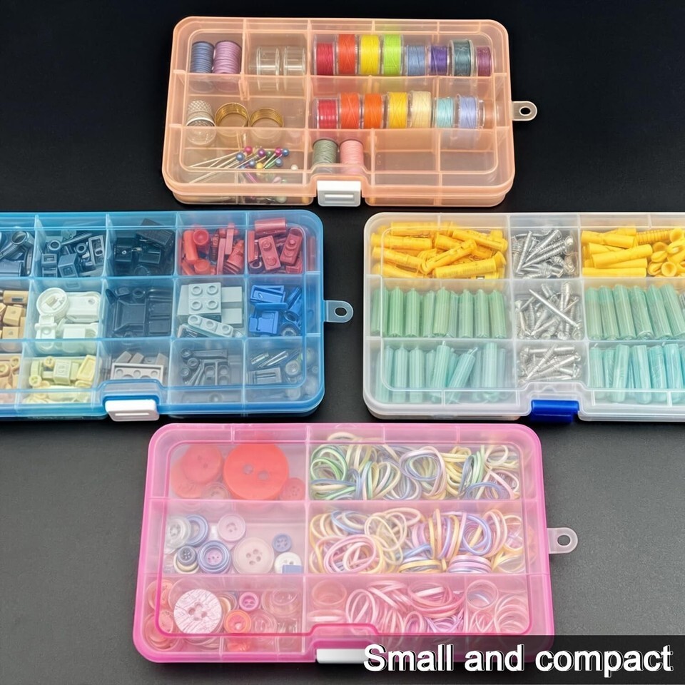 Versatile organizer ideal for storing small items like jewelry, beads, nails, fishing tackle, and more; Lid closes securely with buckle