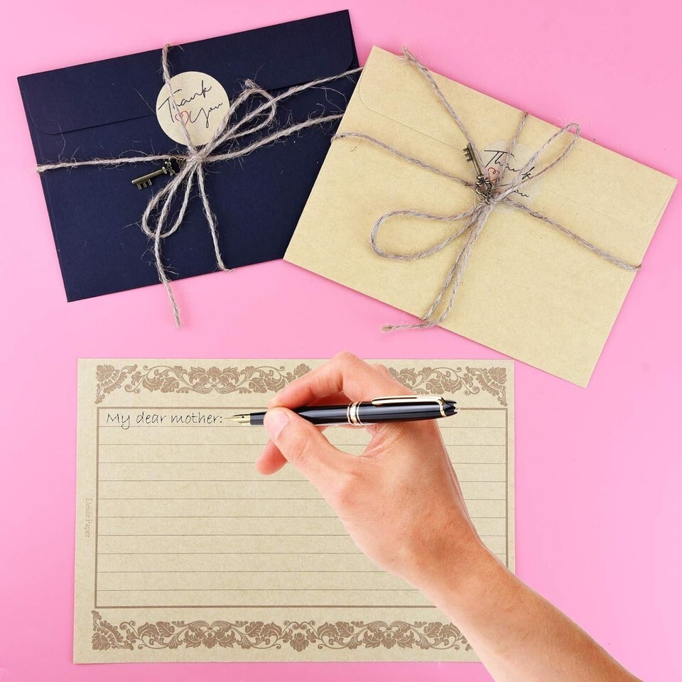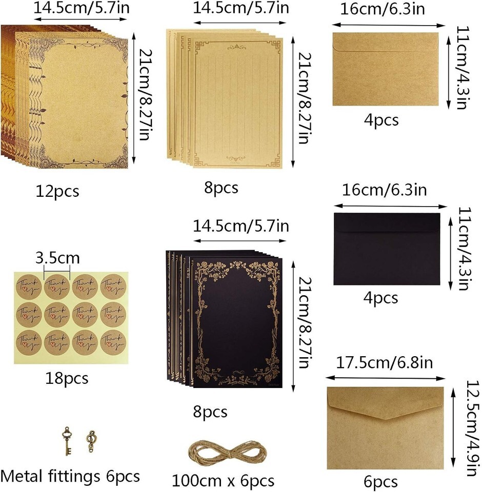 Quality Material: Made of kraft paper, thick and sturdy, smooth writing; Vintage looking Envelope made of thick 120 GSM paper; Vintage looking paper/envelopes are handwriting friendly and printer friendly