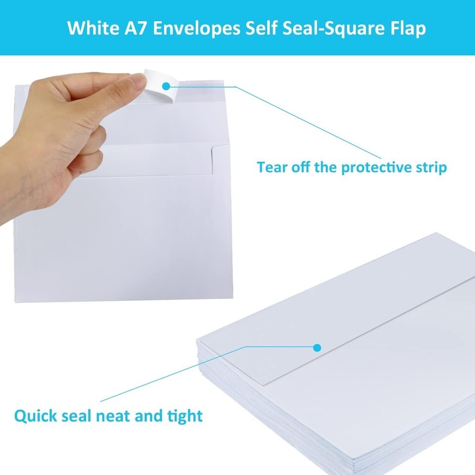 Quick Self Seal Envelopes: Every envelope comes with separate tape, just tear off the protective strip to seal it quickly, tight and hard to fall off and easy enough to use. 5x7 envelopes self seal are ideal for commercial applications, wedding announcements and mailings.