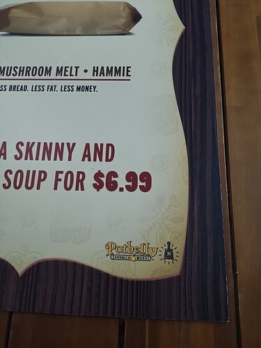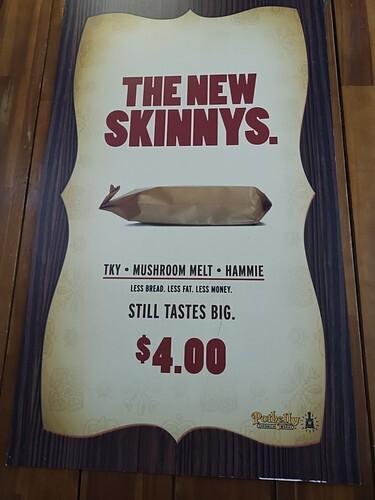 Potbelly Sandwich Works 2000s New Skinnies Promotional Sign 22" X 37 1/4"