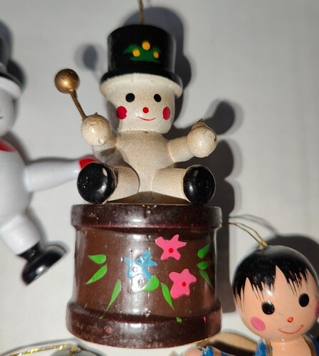 (6) Vintage Russ 3-4" Clown Snowman Taiwan Christmas Ornaments