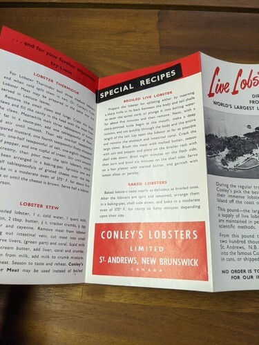 Vintage Conleys Lobsters Limited St Andrew's New Brunswick Canada Brochure