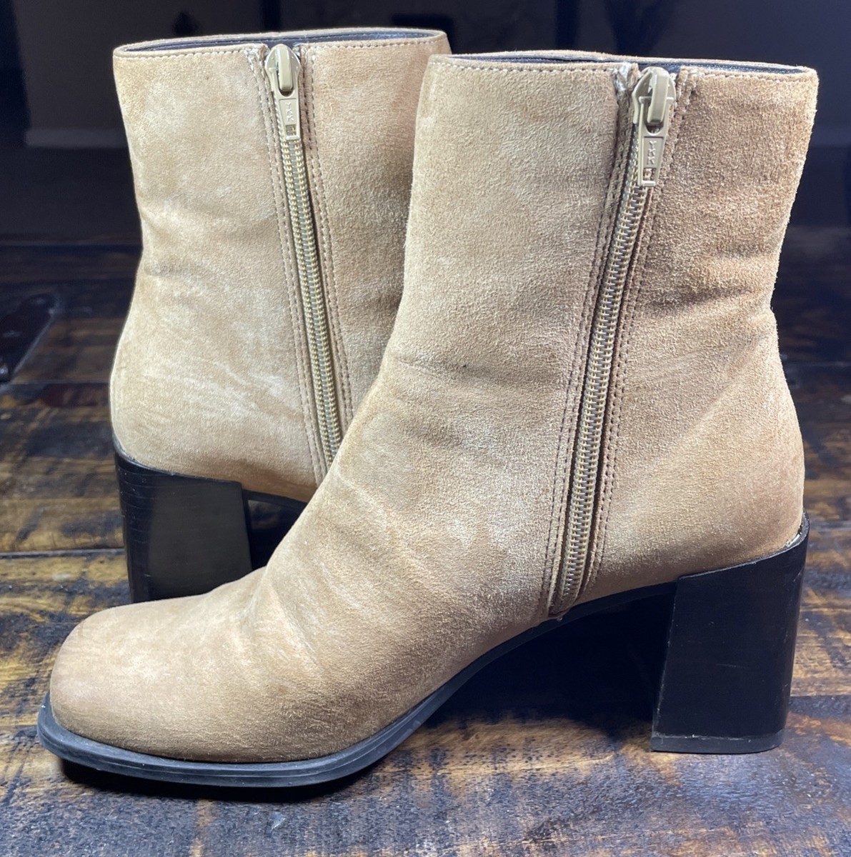 Ankle Boot Classic Suede Leather Beige Bootie Size 7M Pre-owned