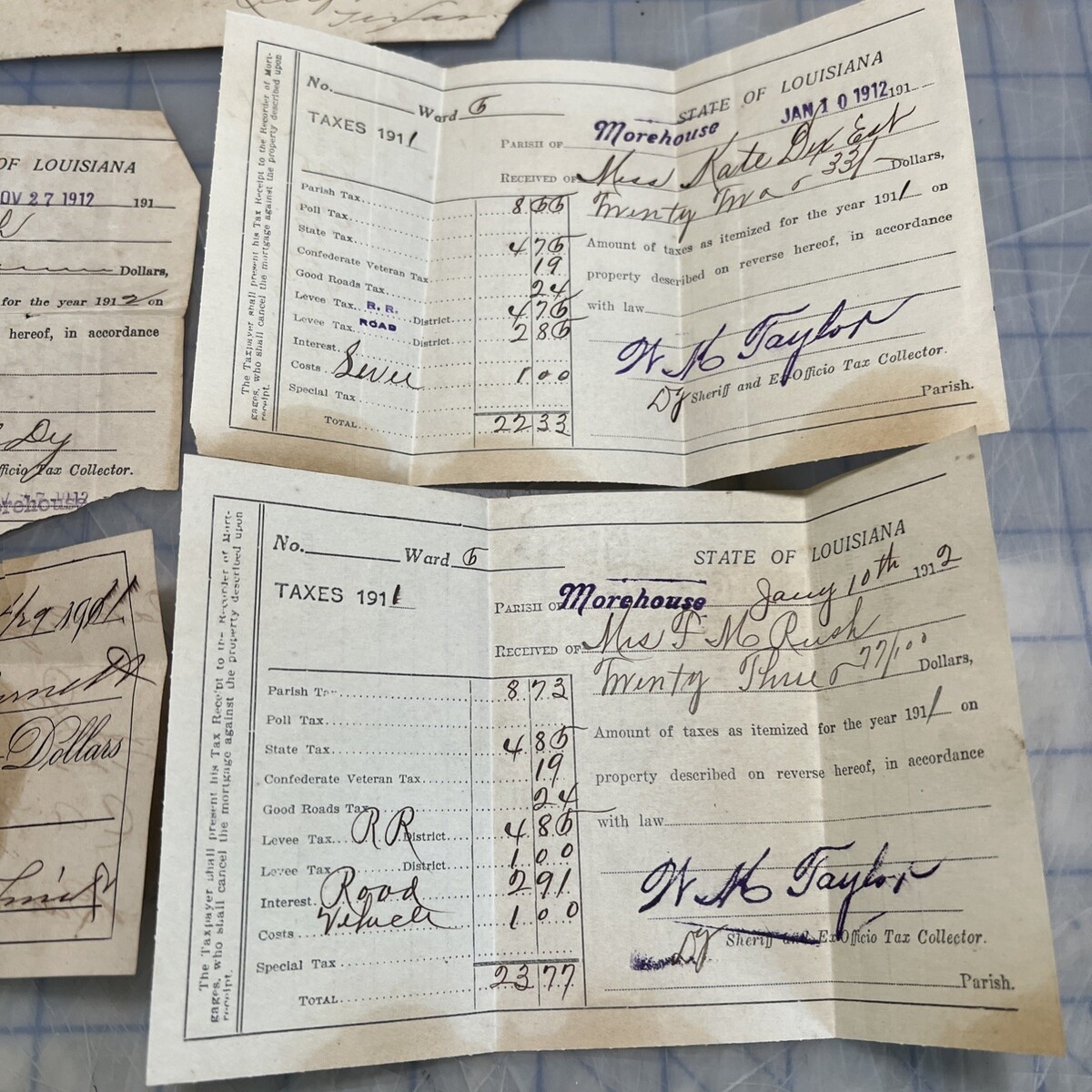 Antique Tax Receipt Oakridge Louisiana Morehouse Parish 1912