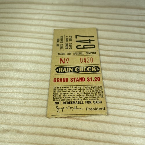 Alamo City Baseball Club 1950s Baseball Ticket Vintage Ephemera