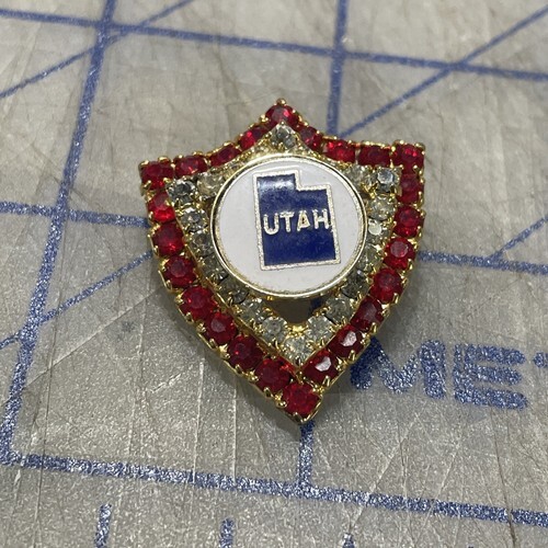 Vintage Rhinestone Pin Red Clear Utah State and similar items