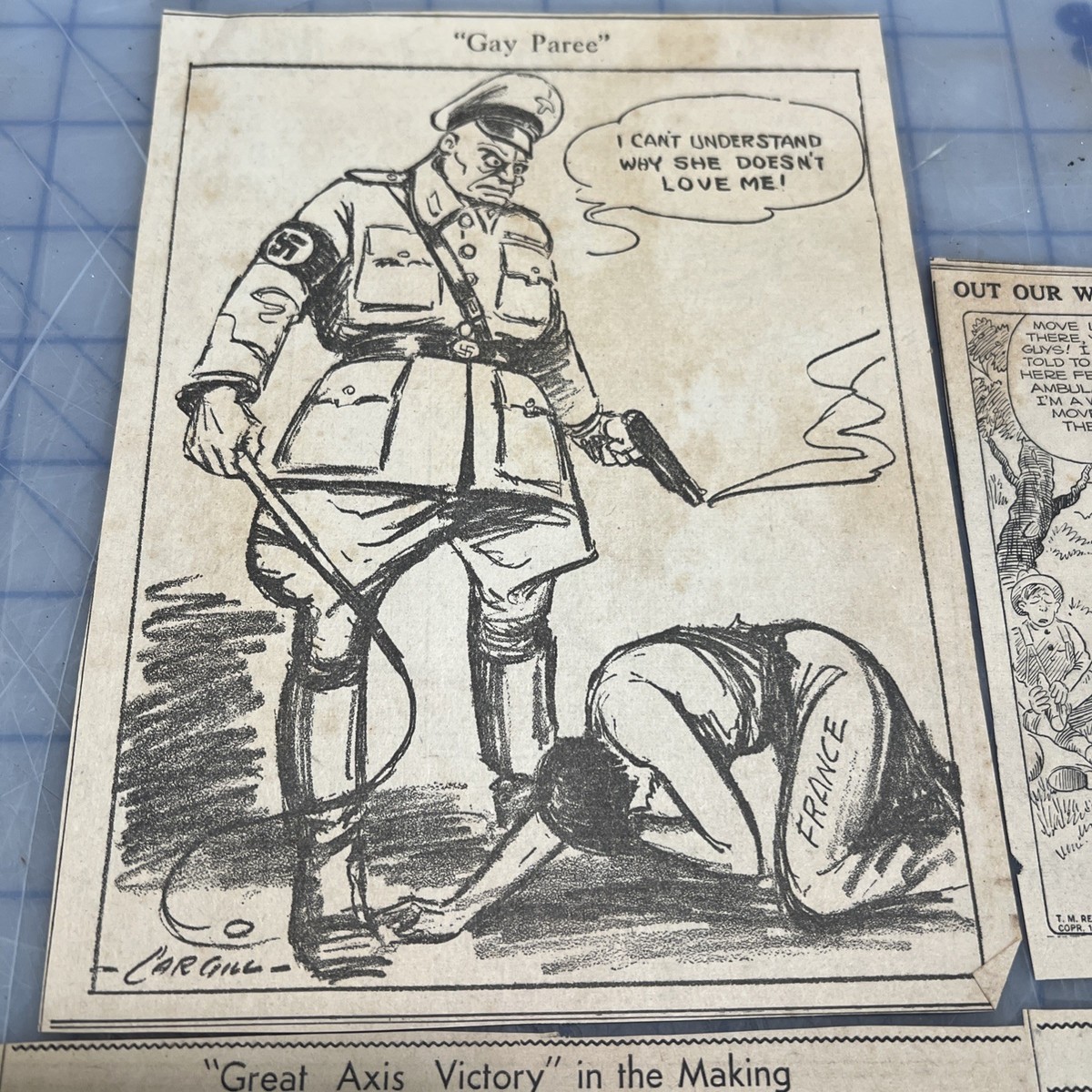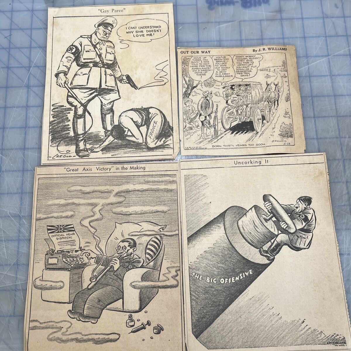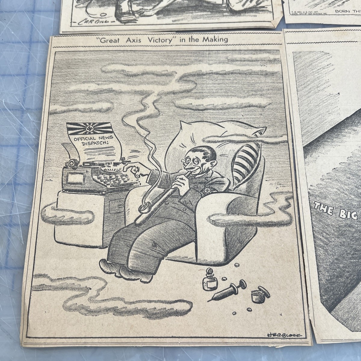 WWII Political Cartoons Herblock World War II Newspaper Clipped Cartoons