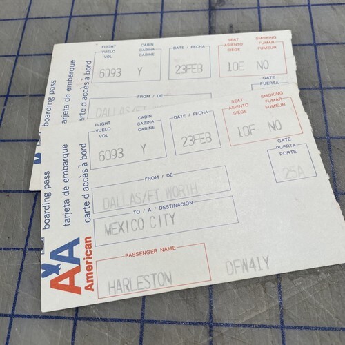 American Airlines Boarding Passes 1980s Dallas To Mexico Ephemera