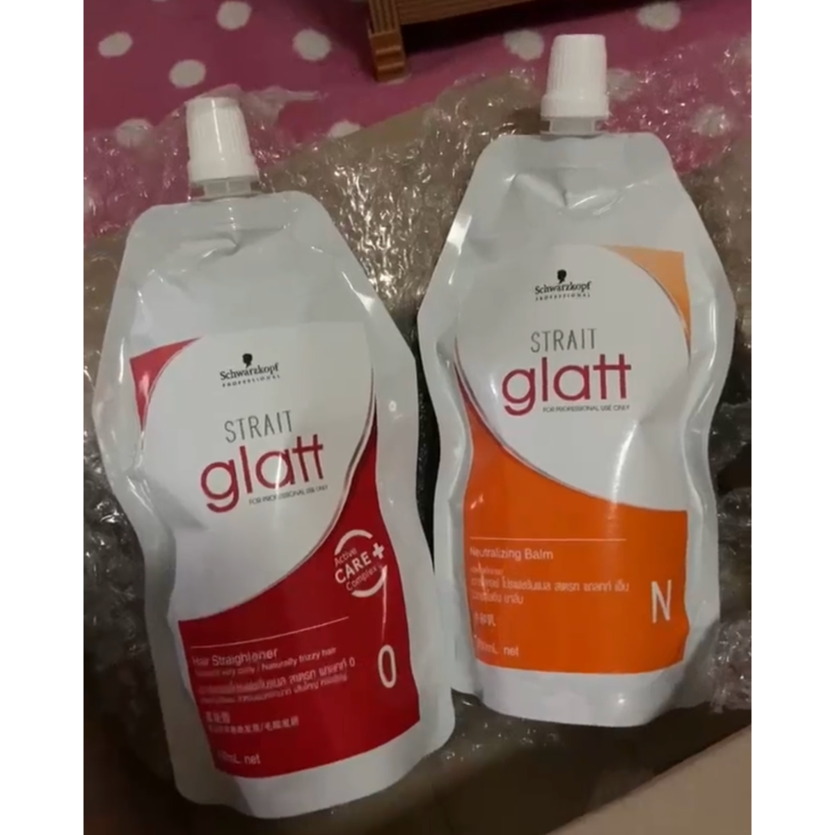 Glattcreme Strait Glatt 2: Aqua, Cetearyl Alcohol, Ammonium Thioglycolate, Ammonium Hydroxid, Propylene Glycol, Ammonium Bicarbonate Parfum(Fragrance), Laureth-23, Ethanolamine, Dimethicone, Sodium Cetearyl Sulfate, Hydrolyzed Wheat Protein, Hydroxyethylcellulose, Etidronic Acid, Dimethiconol