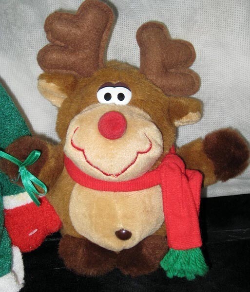 3. Plush Talking Reindeer Merry Christmas Happy New Year! Talks When Green Bow On Left Hand Is Squeezed.