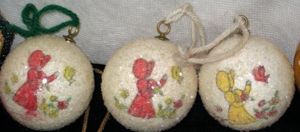 2. 3 Holly Hobby Scene Frosted Snowballs Of Styrafoam Round 2 1/2" Sturdy Metal Hangers With Yarn