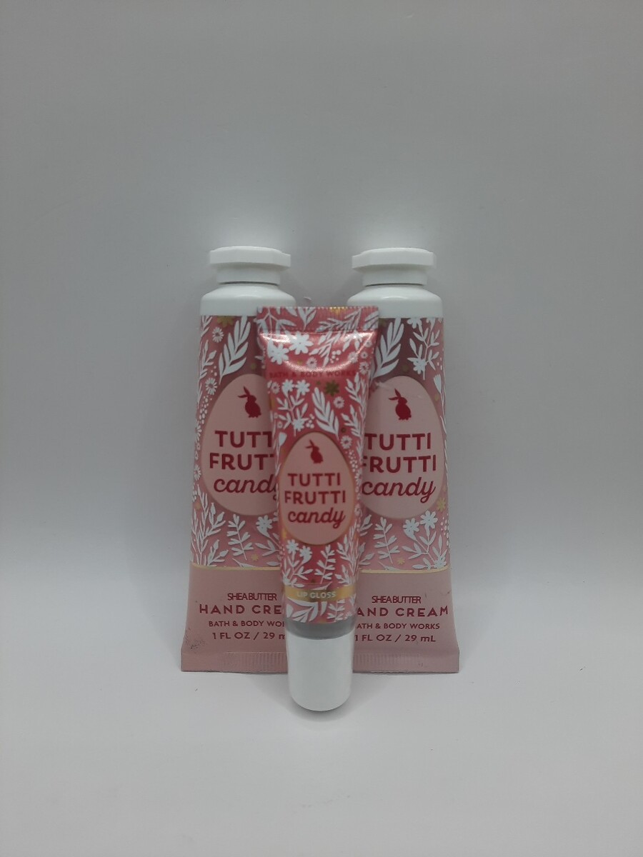 Bath Body Works TUTTI FRUTTI CANDY Hand Cream (2) Lip Gloss (1) Brand New.