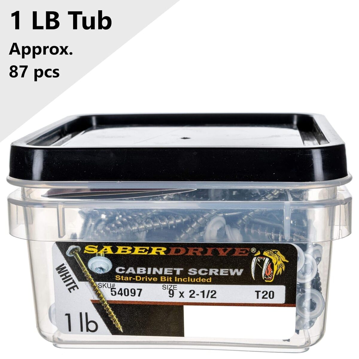 Title : #9 x 2-1/2" Saberdrive White Cabinet Screws 1 LB, Approx. 87 Pieces, Durable Wood Screws, Serrated Thread for Secure Fastening, Avoid Cam Out