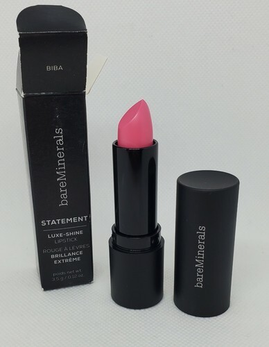 New in Box bareMinerals Statement Luxe Shine Lipstick in BIBA (Pink) Full Size. 3 5g / 0.12oz