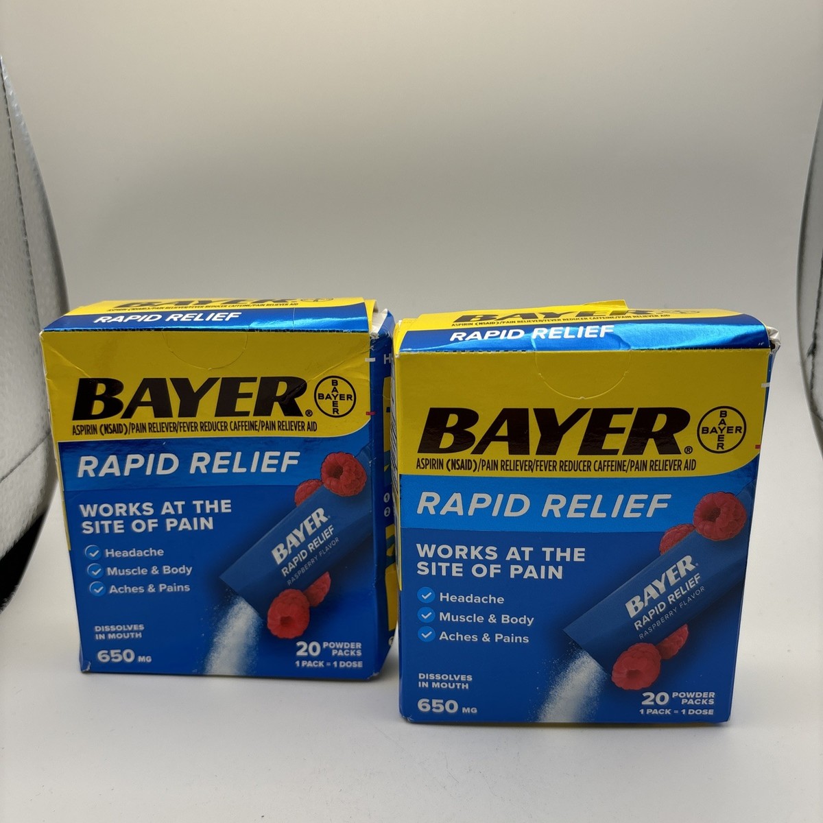 2 pack Bayer Rapid Relief 650mg,Raspberry flavor, 20 Powder Packs~Pass Due Date