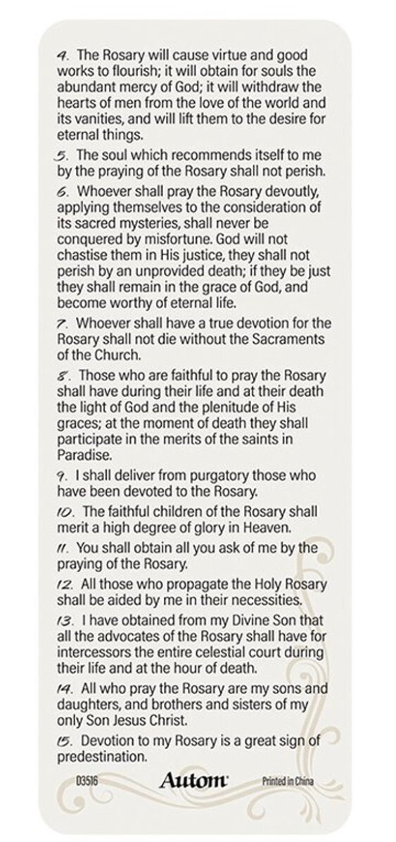 15 Promises of Mary, To Those Who Pray the Rosary Large Bookmark, New #PC-20