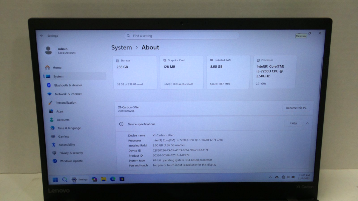 Lenovo ThinkPad X1 Carbon Gen 5 | Core i5 8GB RAM 256GB SSD Win 11 | X BATTERY