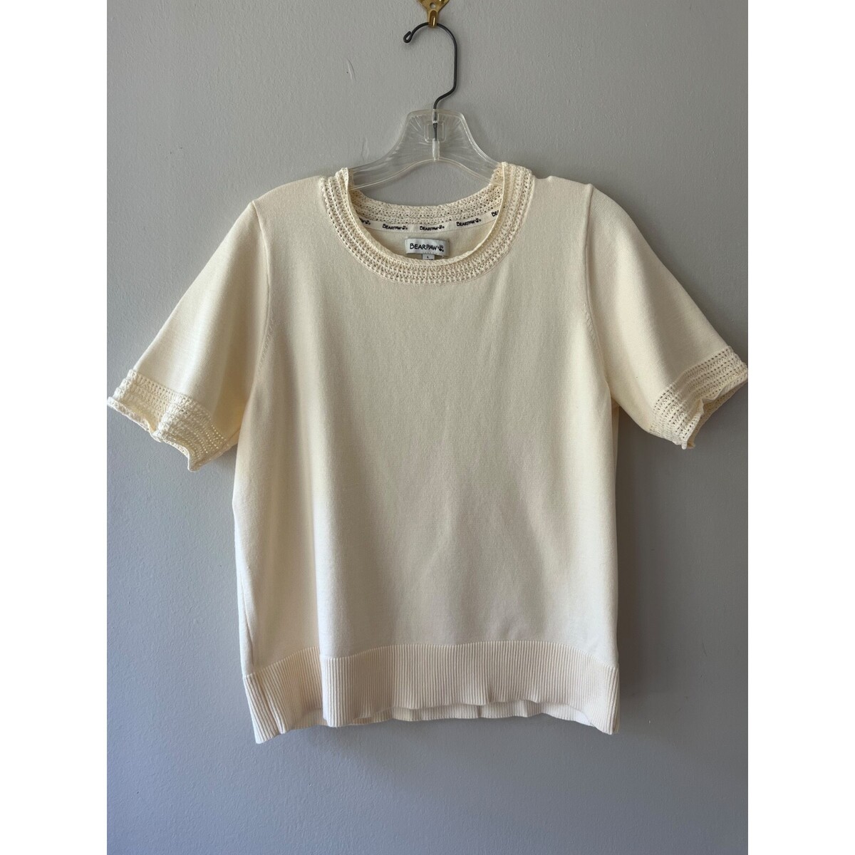 Bearpaw Sz L Crochet Short Sleeve Crewneck Top Blouse Cream Stretch Pullover