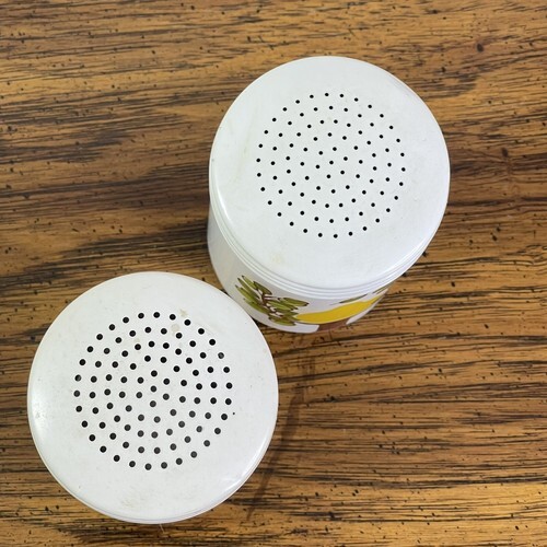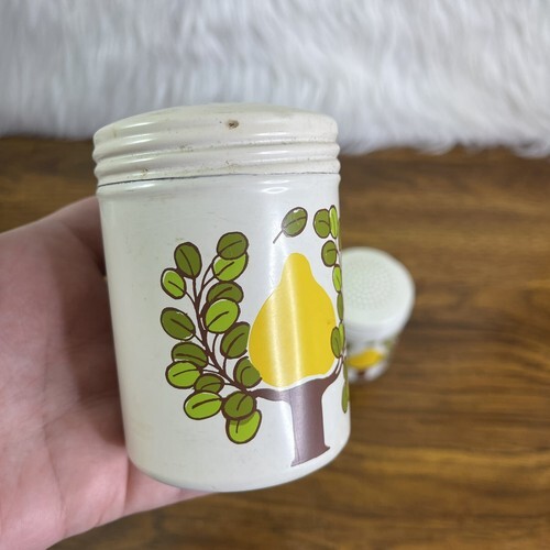 Ransburg Fruit Tree Metal Power Salt & Pepper Shaker Rare Retro Farmhouse READ