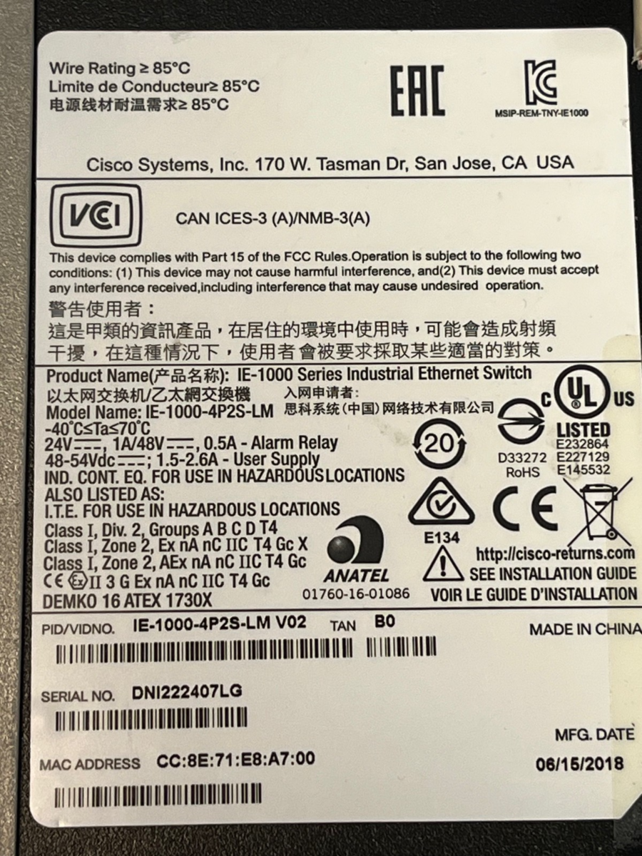Cisco IE1000-4P2S-LM V02 Industrial PoE and 14 similar items