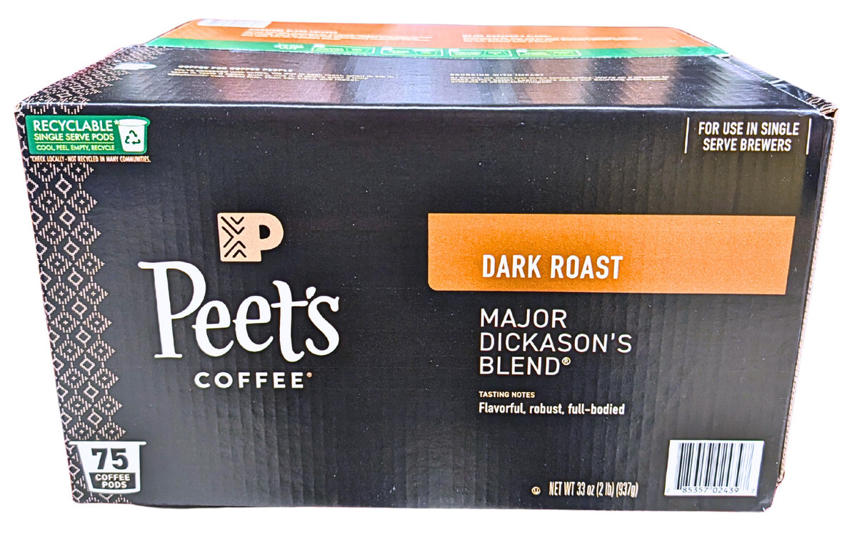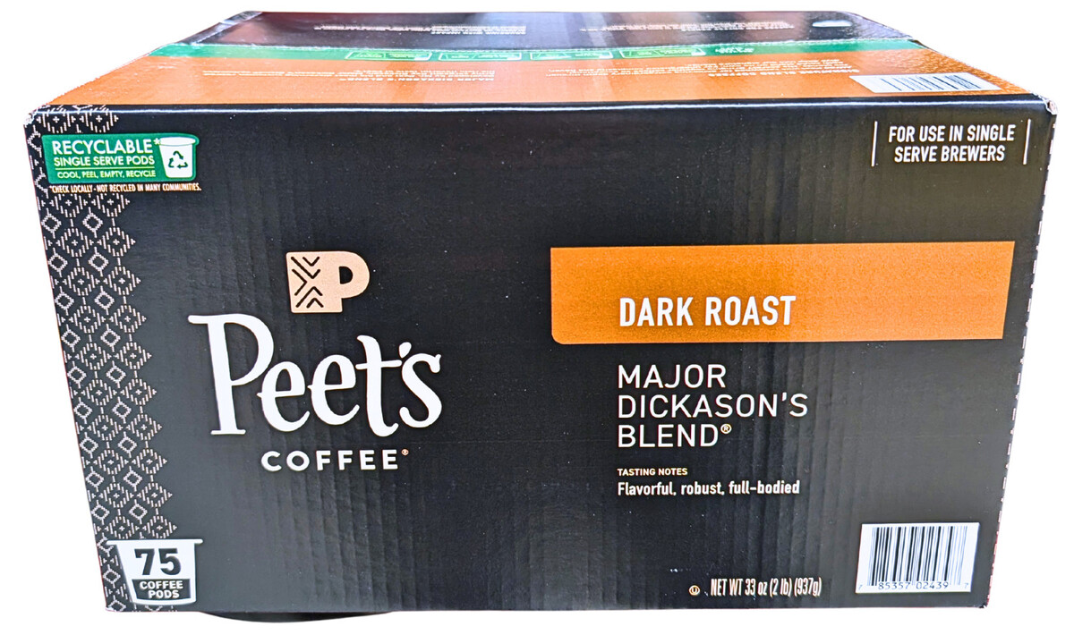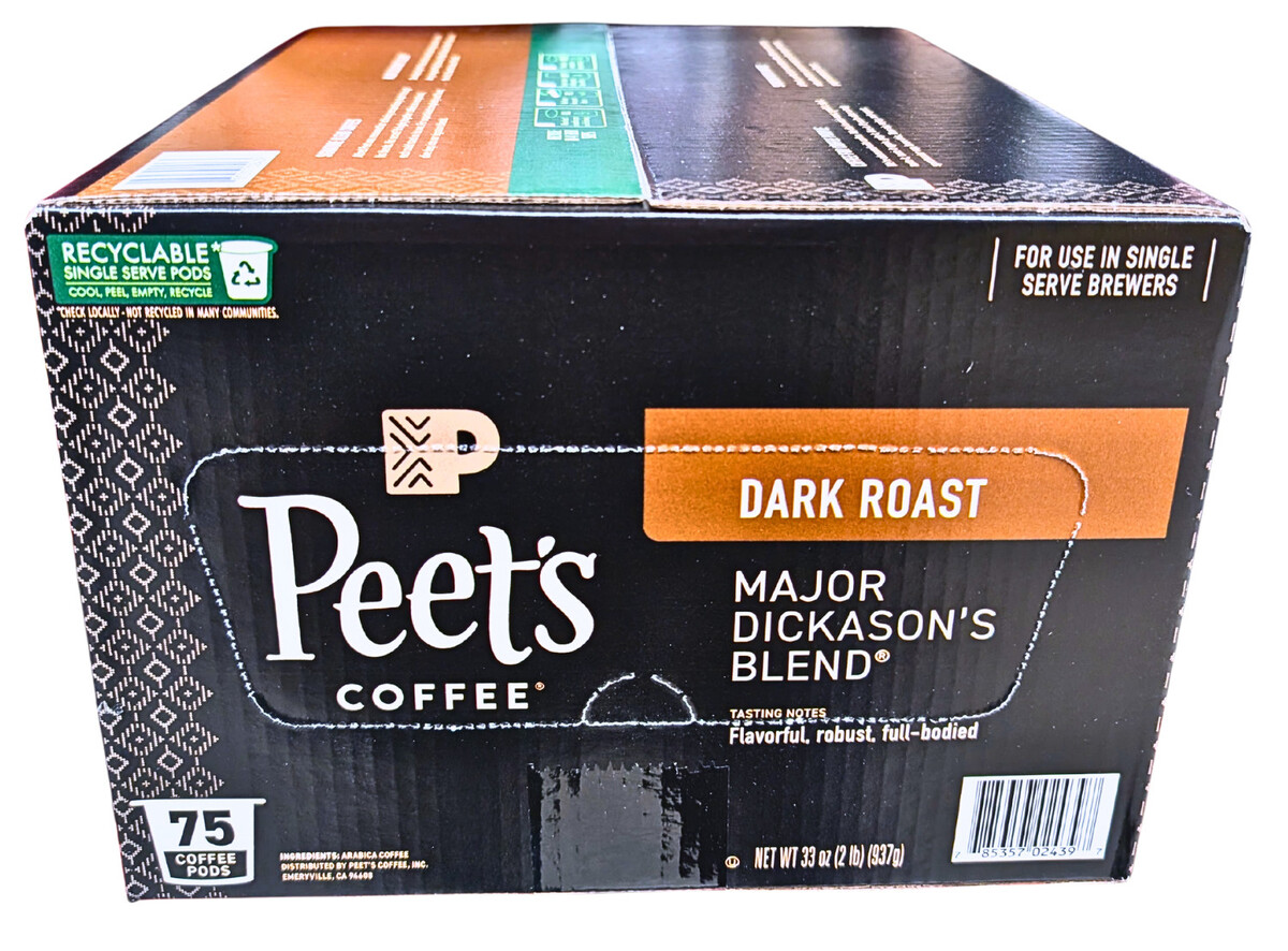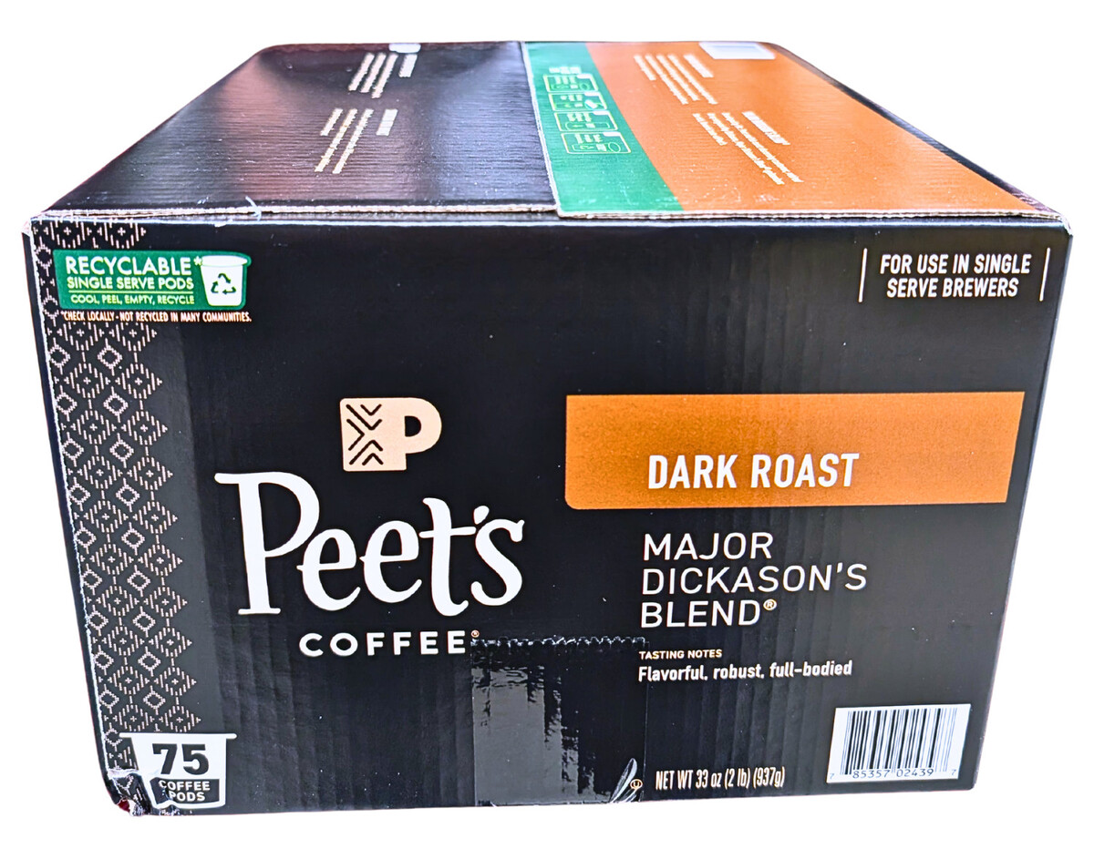 Peet's Coffee Dark Roast K-cup Pods Major Dickason's Blend 75 Count EXP 05/2026