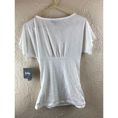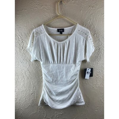 NWT BY & BY JUNIORS TOP Small Ivory Beaded Shoulder Round Neck Ruched