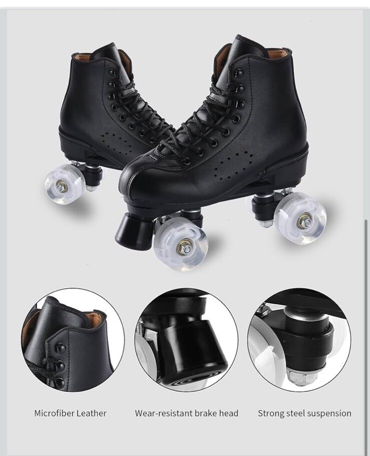 The product is a pair of Ugboio roller skates designed for both men and women in sizes 8 and 9.5-10 respectively. These roller skates are suitable for beginner skaters looking to use them indoors or outdoors. The black color and unisex design make them versatile for anyone interested in roller skating. With a focus on quality and durability, these roller skates offer a safe and enjoyable experience for skaters of all levels.