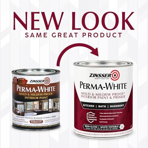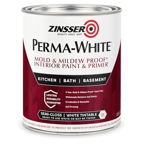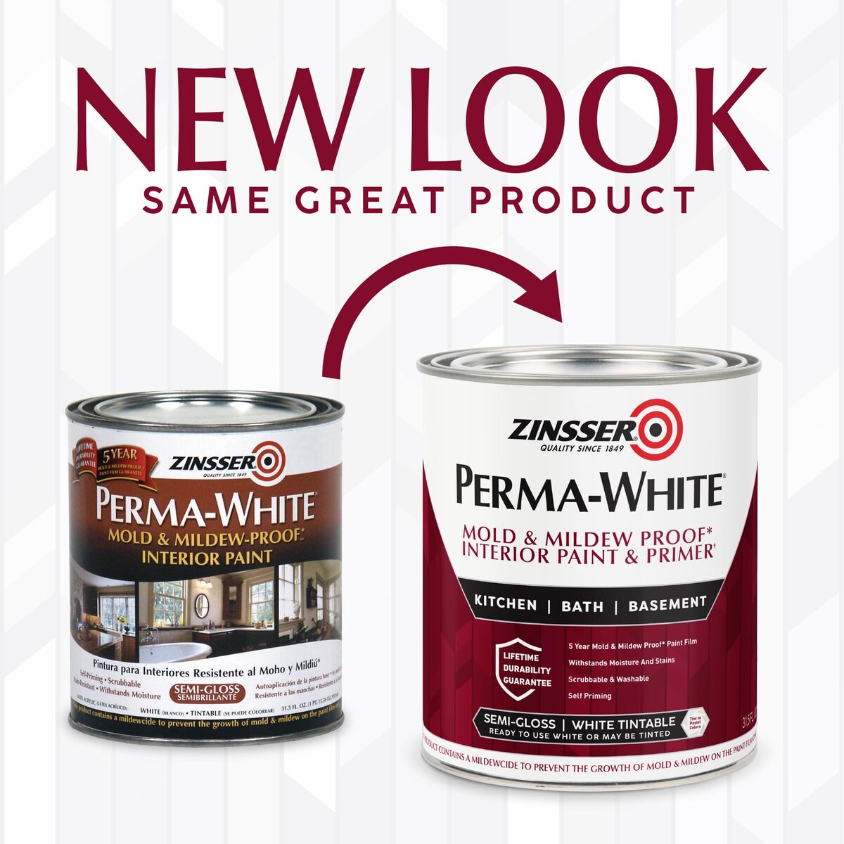 Zinsser 02754 PERMA-WHITE Mold and Mildew Proof Interior Paint, Quart, Semi-Glos