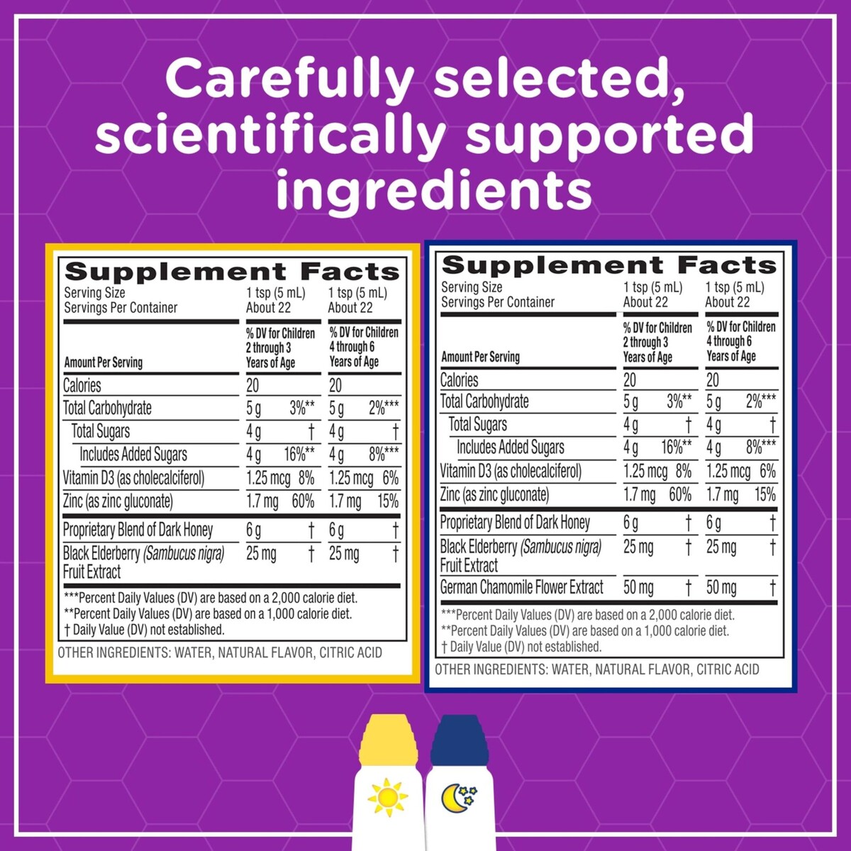 Expiration Date of 4/2026 ? SAFE EFFECTIVE RELIEF ALL DAY: Zarbee's Children's Cough Syrup + Immune Day Night Value pack in a mixed berry flavor that your toddler will love. Safe for kids ages 2+, our cough syrup is formulated with naturally sourced safe ingredients* ? COUGH-SOOTHING HONEY: Each cough syrup serving contains dark honey to effectively soothe coughs associated with hoarseness, dry throat, irritants,* the dark honey blend gently calms comforts dry, irritated throats* ? YOUR TODDLER'S NATURAL IMMUNE SYSTEM: Each cough syrup also contains real elderberry, vitamin D, zinc for added immune support,* plus, the nighttime cough syrup includes chamomile to calm the body mind before bed* ? INGREDIENTS INSPIRED BY NATURE: Free of drugs, alcohol, artificial sweeteners, added flavors or dyes, or high fructose corn syrup. Our cough syrups are naturally sweetened. The only sugar in our bottles comes from our soothing dark honey elderberry ? #1 PEDIATRICIAN RECOMMENDED: Developed by a father pediatrician, Zarbee's is the #1 pediatrician recommended cough syrup children 12 under. Keep the cough immune support* syrups on hand to help keep your hive feeling its best