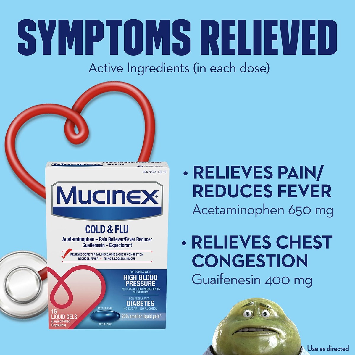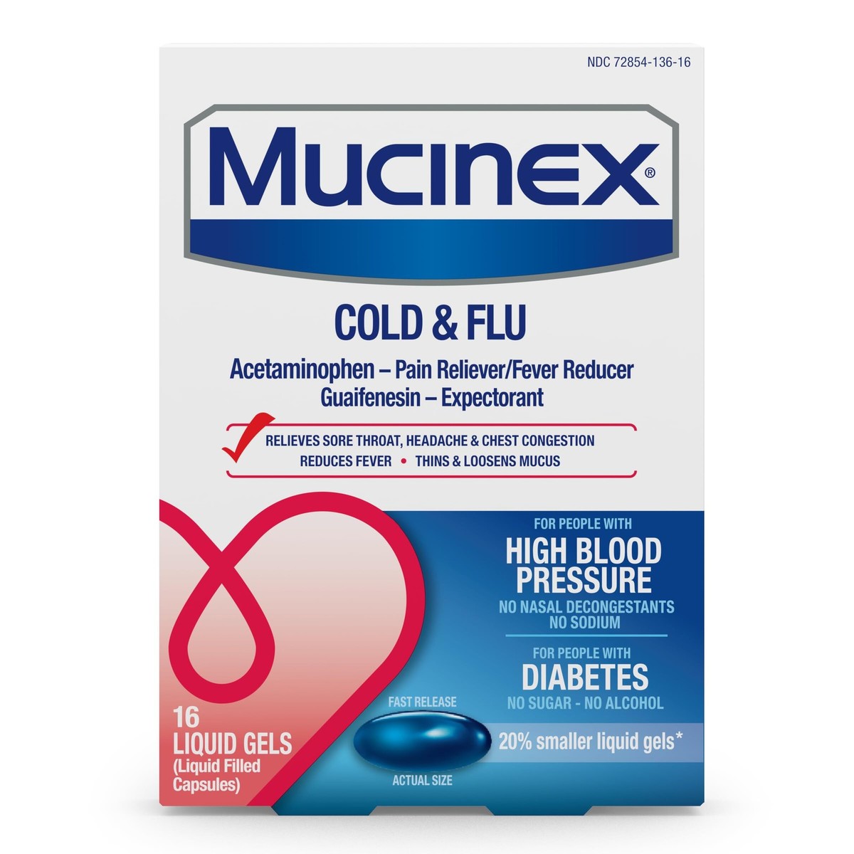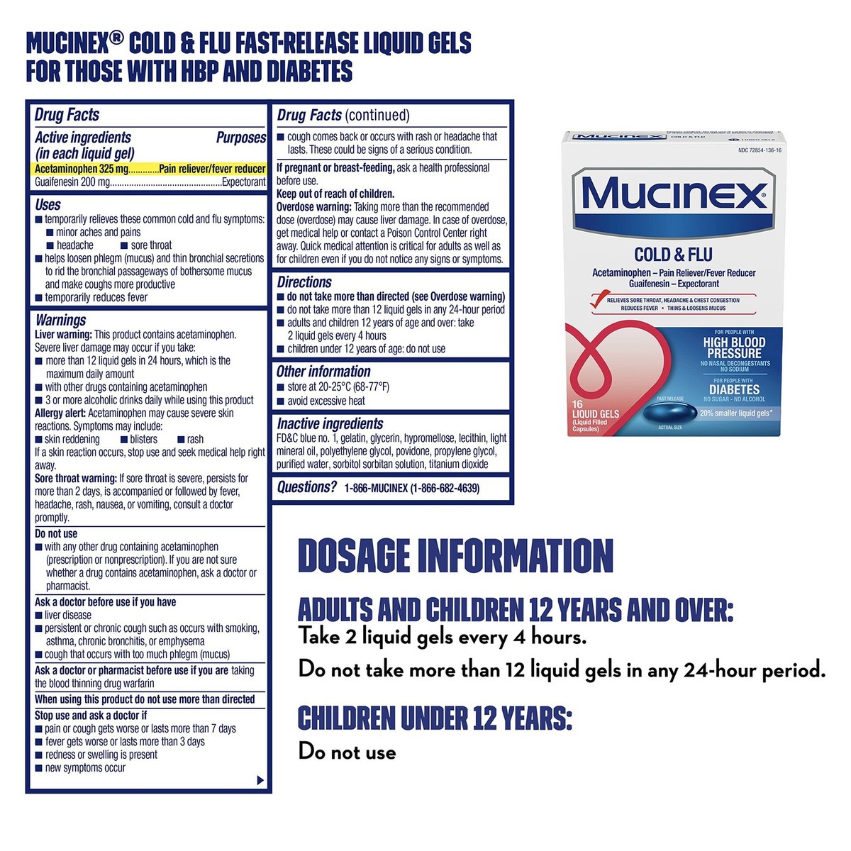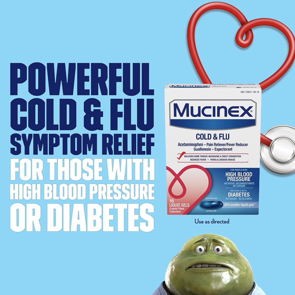 3x Mucinex Cold & Flu High Blood Pressure Liquid Gels, 16 ct.