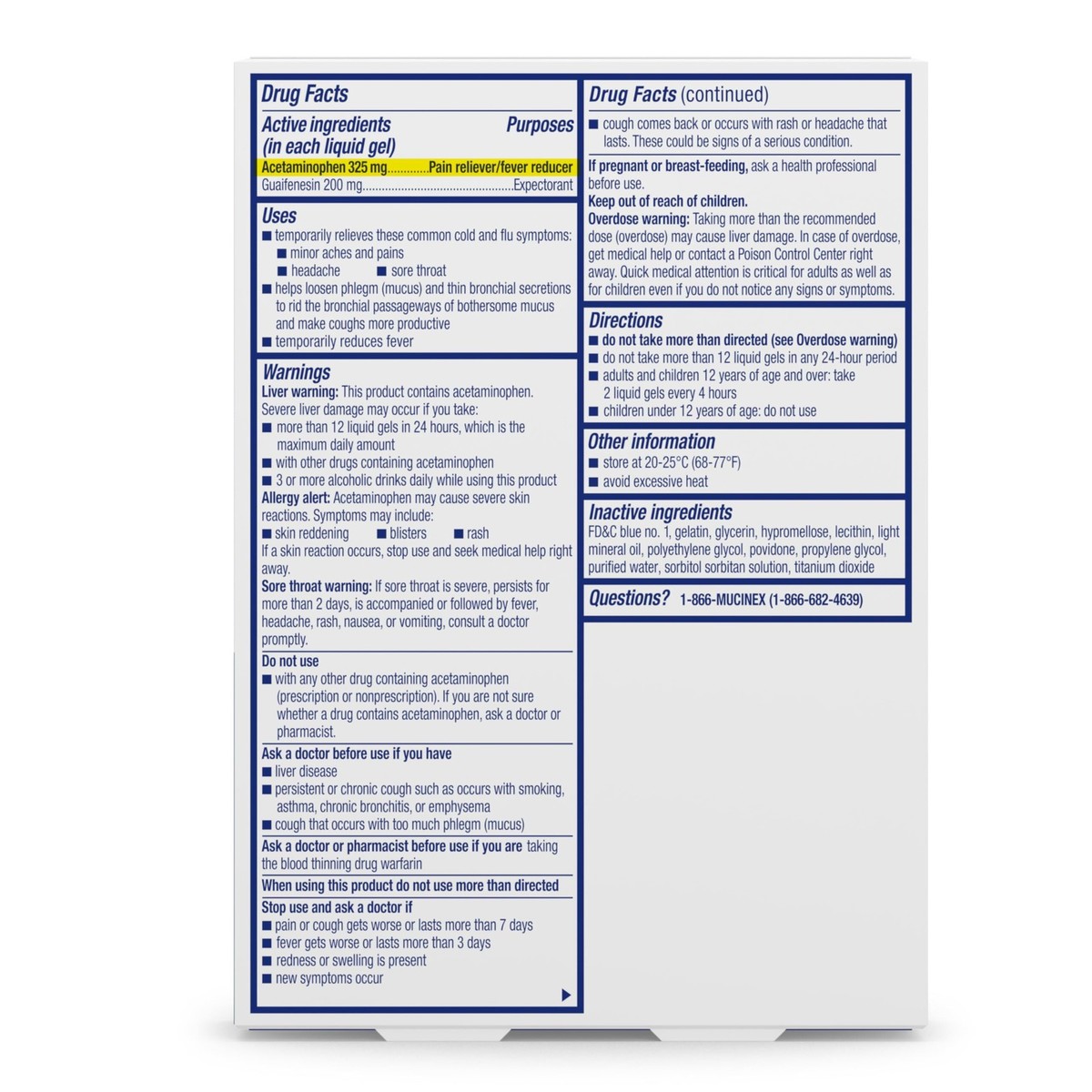 3 Boxes Expiration Date of 5/2026 ? Symptom relief: Temporarily relieves sore throat, headache and chest congestion. Temporarily reduces fever. Thins and loosens mucus. ? For people with high blood pressure and for people with diabetes ? No nasal decongestants, no sodium, no sugar and no alcohol ? Active ingredients: Acetaminophen (pain reliever/fever reducer) and Guaifenesin (expectorant)