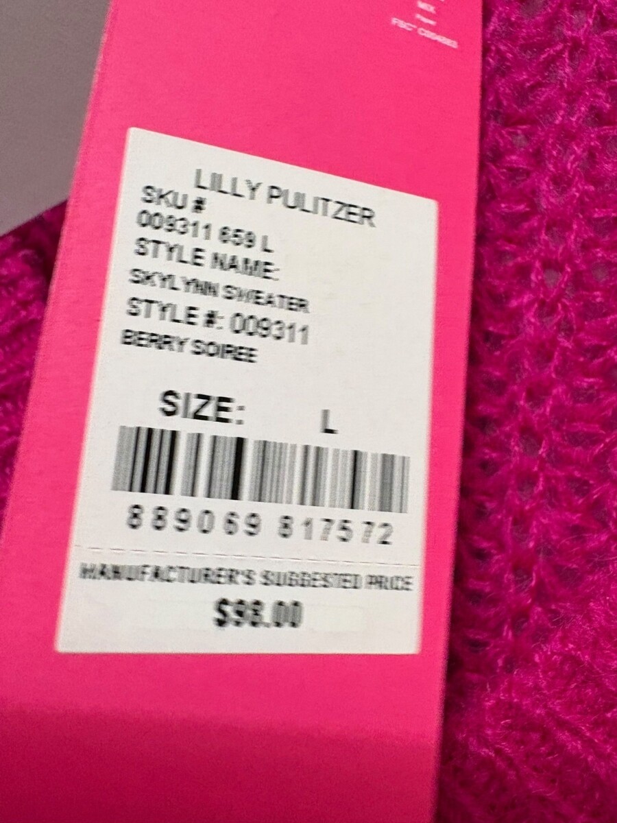 Lilly Pulitzer NWT Skylynn Sweater Women’s L Berry Soirée Pink Wool Blend Knit