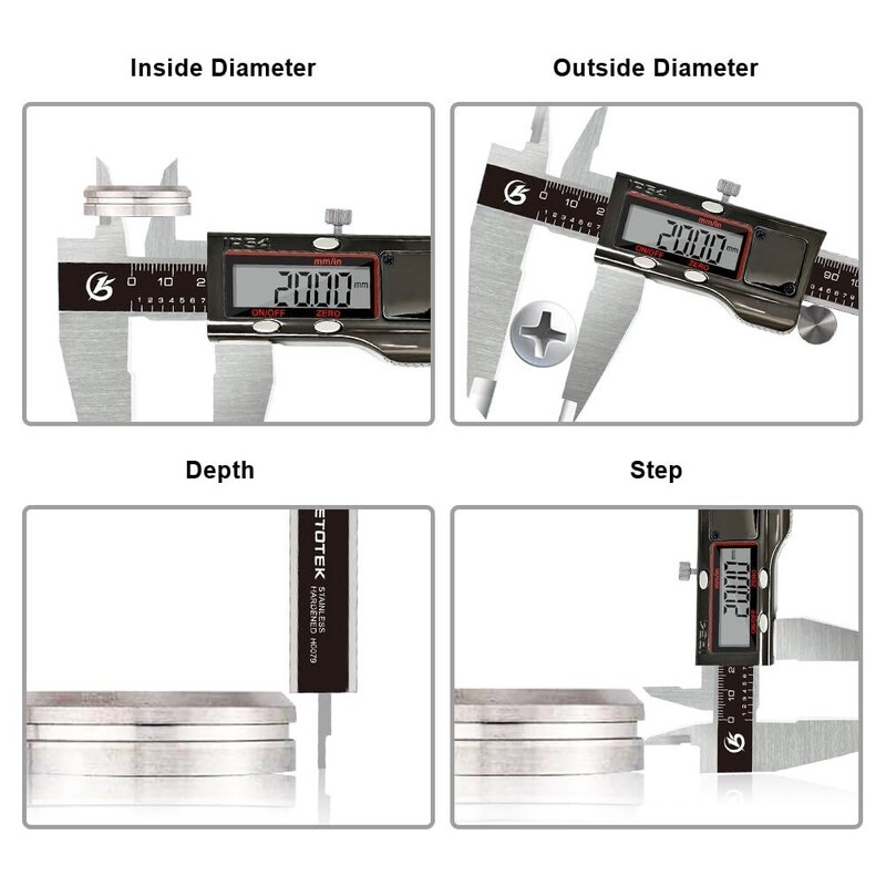?4 Measuring Ways?This calipers measuring tool come with two precise internal and external measuring jaws and a stainless steel depth measuring blade, which are easy to measure depth, step, external and internal diameter, making all your objects measurable.