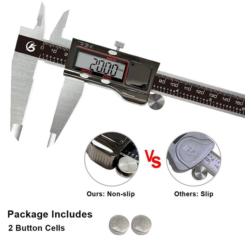 The measuring grips of this digital caliper 12 Inch are made of high-strength stainless steel and precision ground to ensure accurate and stable caliper measurements.