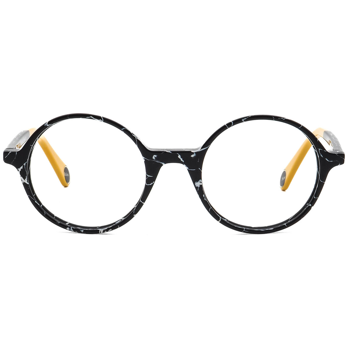 Woow Eyeglasses New Rules 1 Col 2150 Polished Black Marble Round Frame 46-21 145
