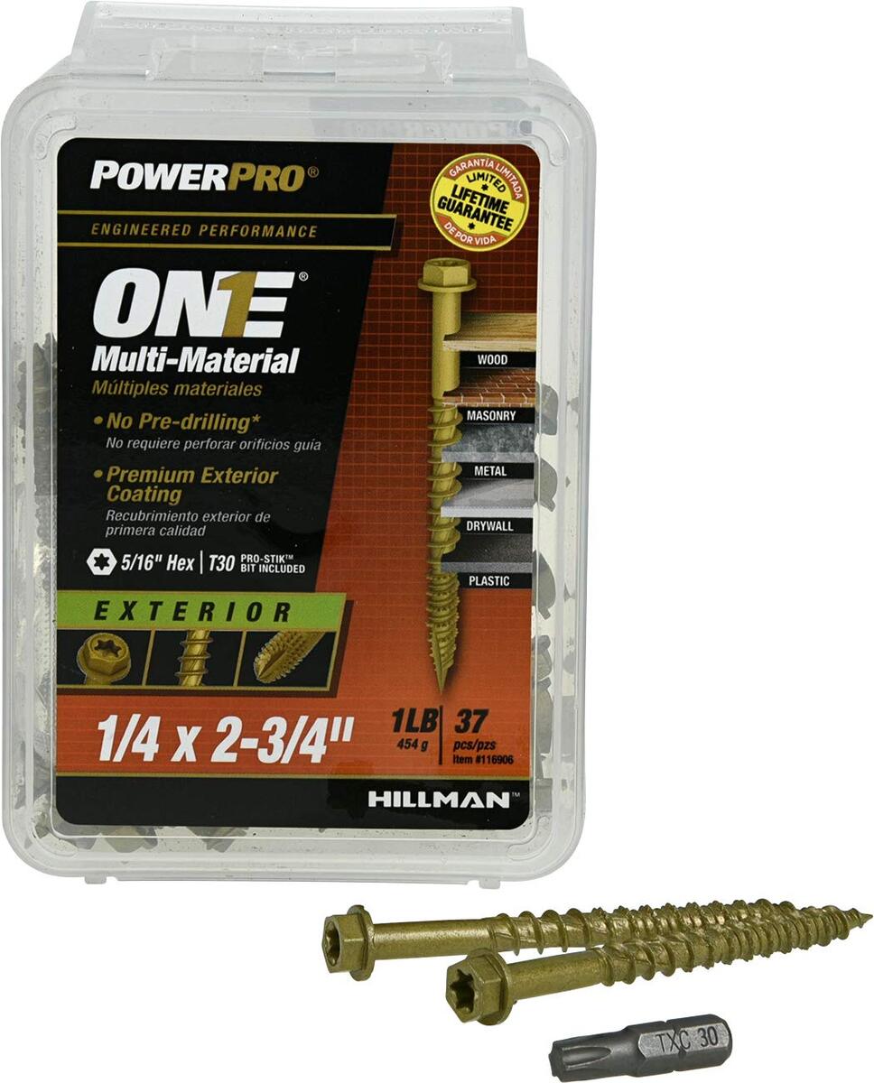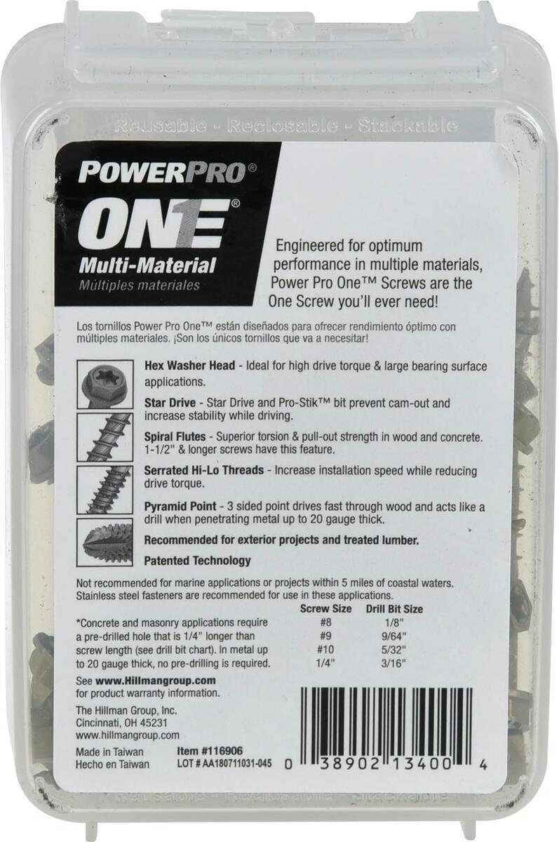 Power Pro Premium One Multi-Material Hex Washer Head Screws, Epoxy Coated Steel,