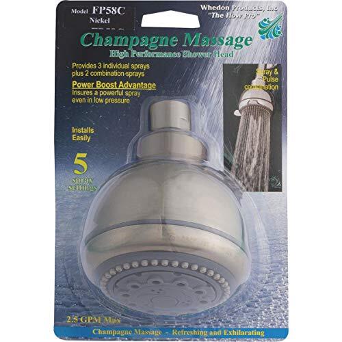 Whedon Champagne Massage Brushed Nickel 5 Settings Showerhead 2-1/2 gpm