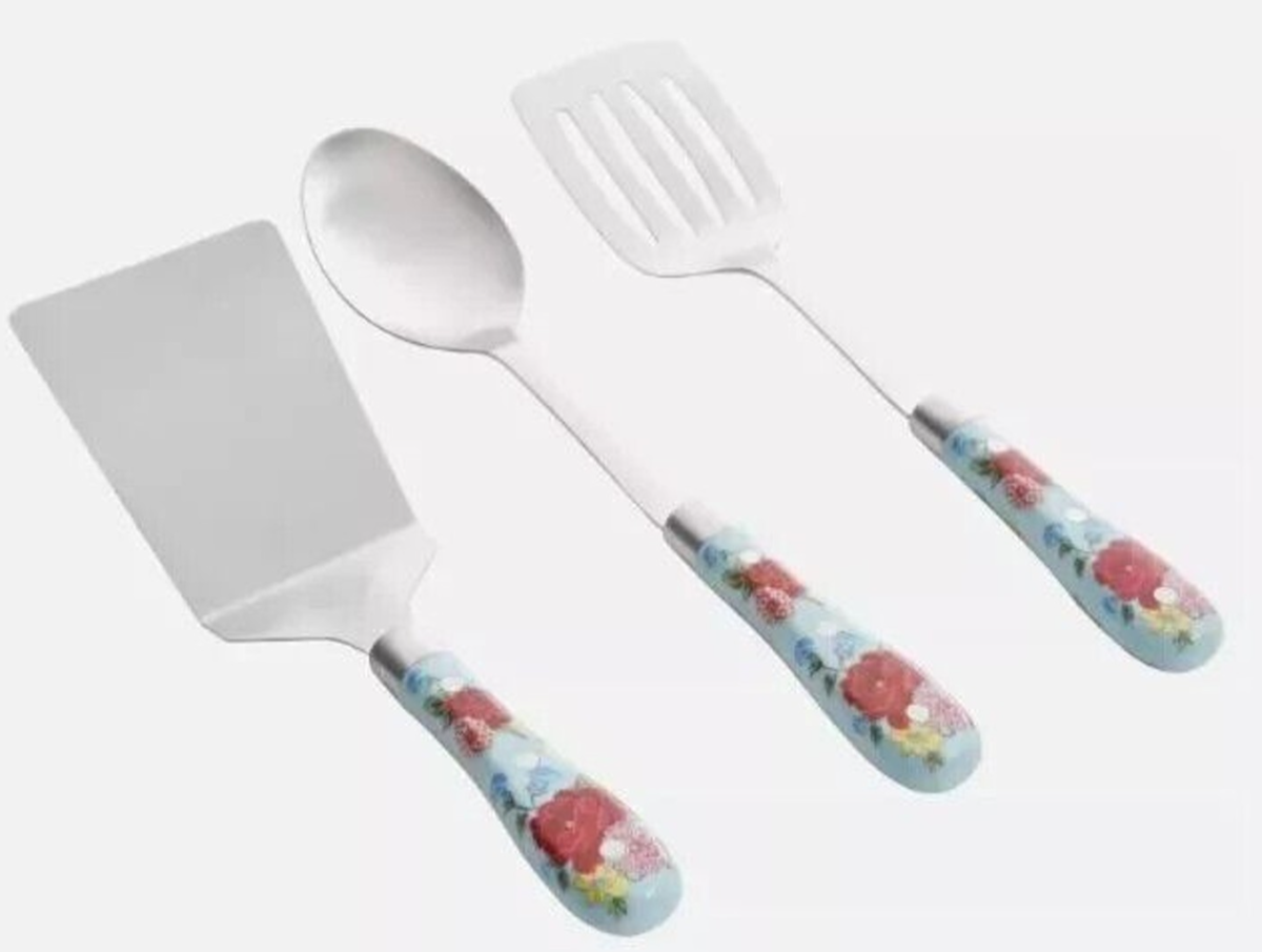 The Pioneer Woman Sweet Rose 3-Piece Kitchen Tool Set has three essential tools to prep cook and serve delicious meals.