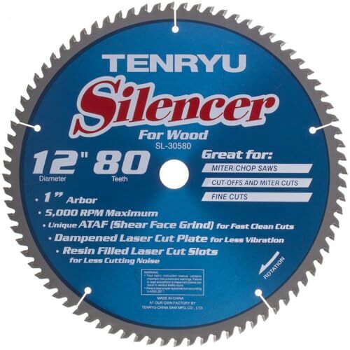 TENRYU SL-30580C 12" Wood Blade 80T 1" Arbor, 0.106 Kerf, 5000 RPM, Miter Saws