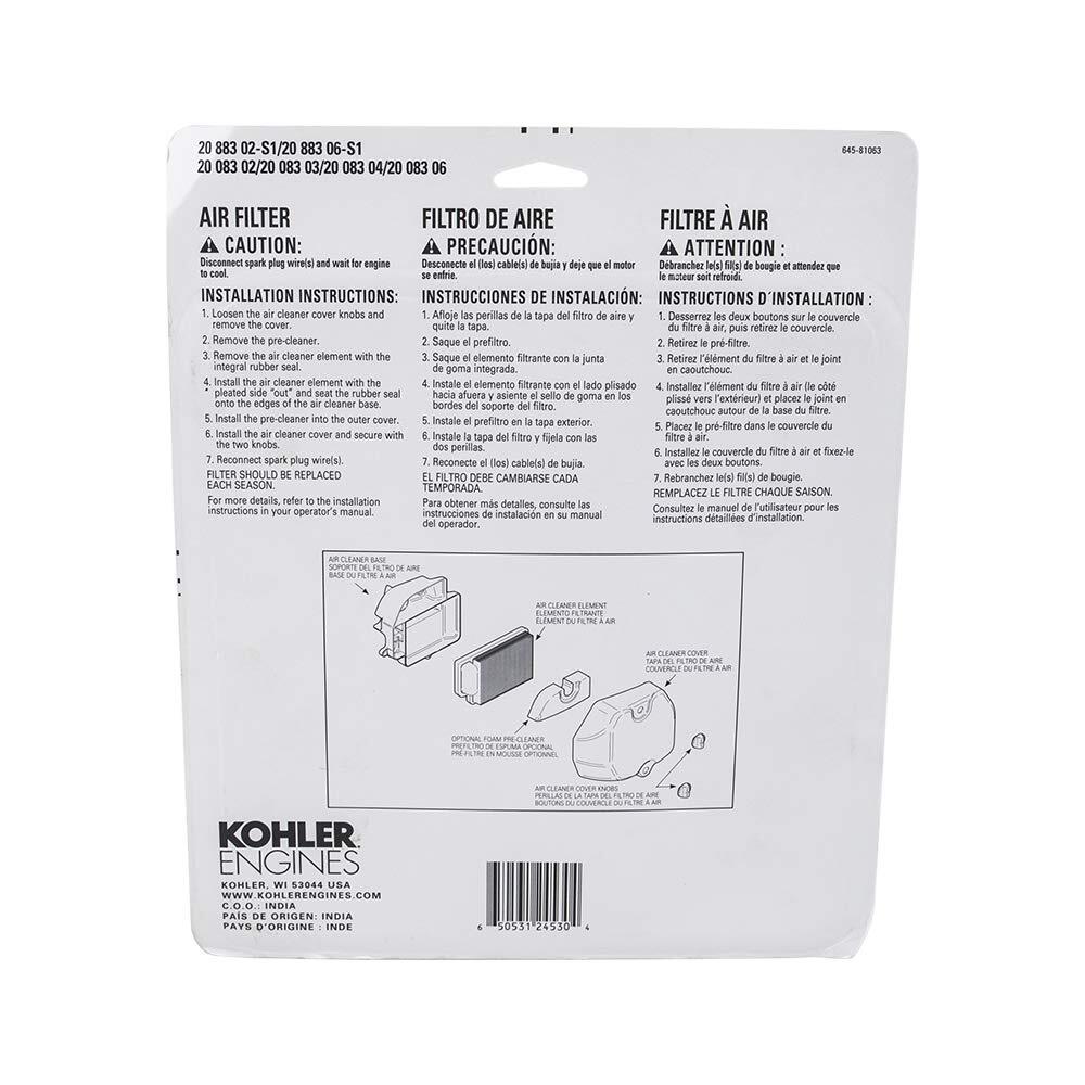 Kohler Superior Filtration Replacement Engine Air Filter, Black |