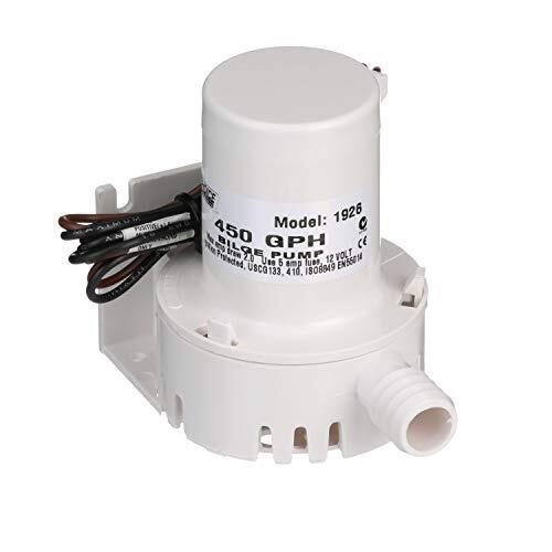 450 GPH mini bilge pump evacuates water fast |