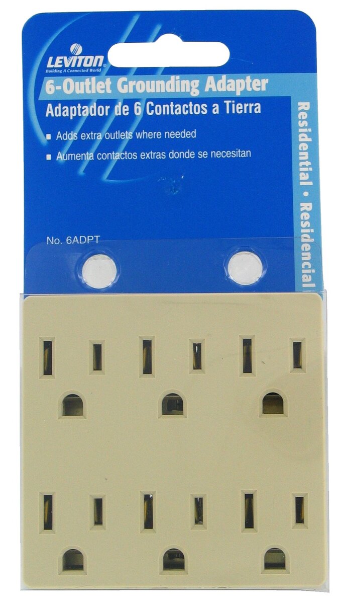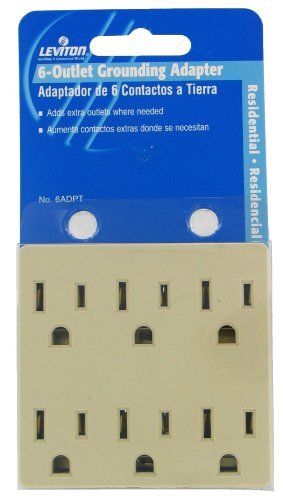 Leviton 15 Amp, 125 Volt, 6 Outlet Grounded Adapter, 6ADPT-I, Ivory |
