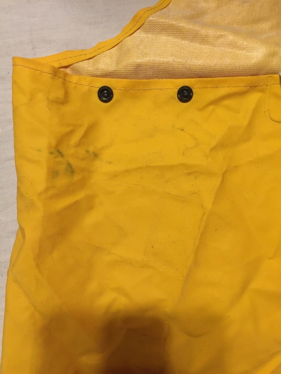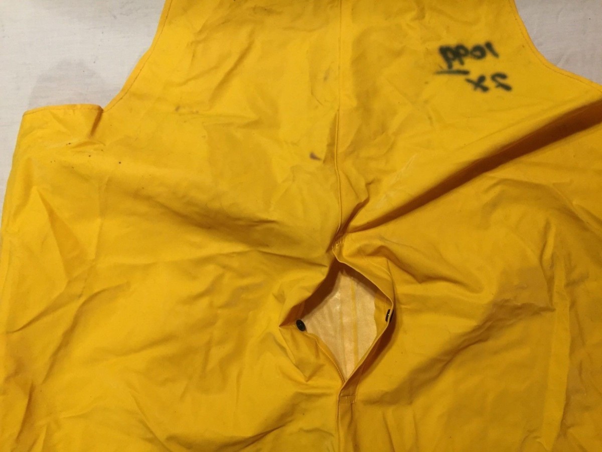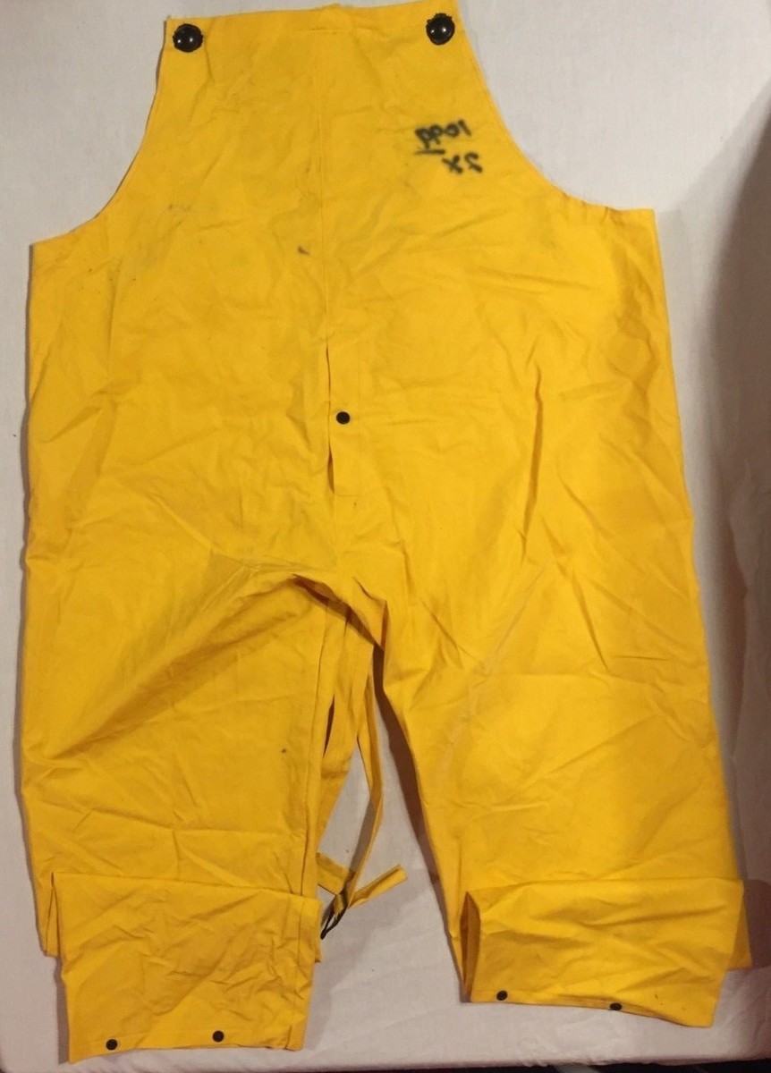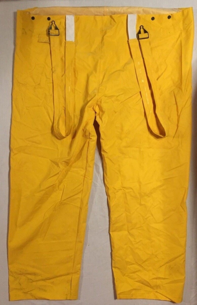 YELLOW XXL 2XL WET RAIN SUIT PANTS BOTTOMS ADJUSTABLE CLICK ON SUSPENDERS USED