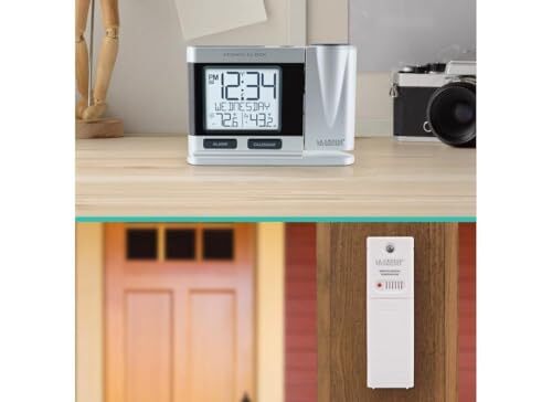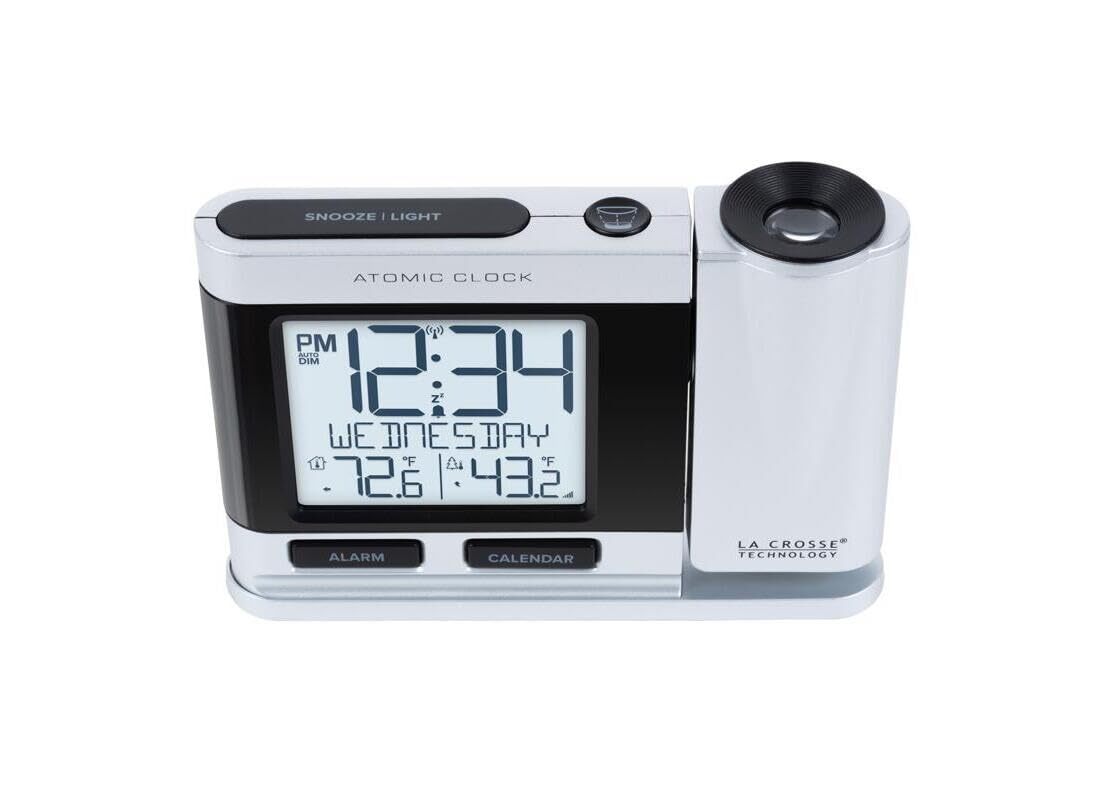 La Crosse Technology 2.5 in. Silver Atomic Projection Alarm Clock LCD Plug-in