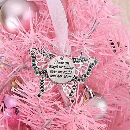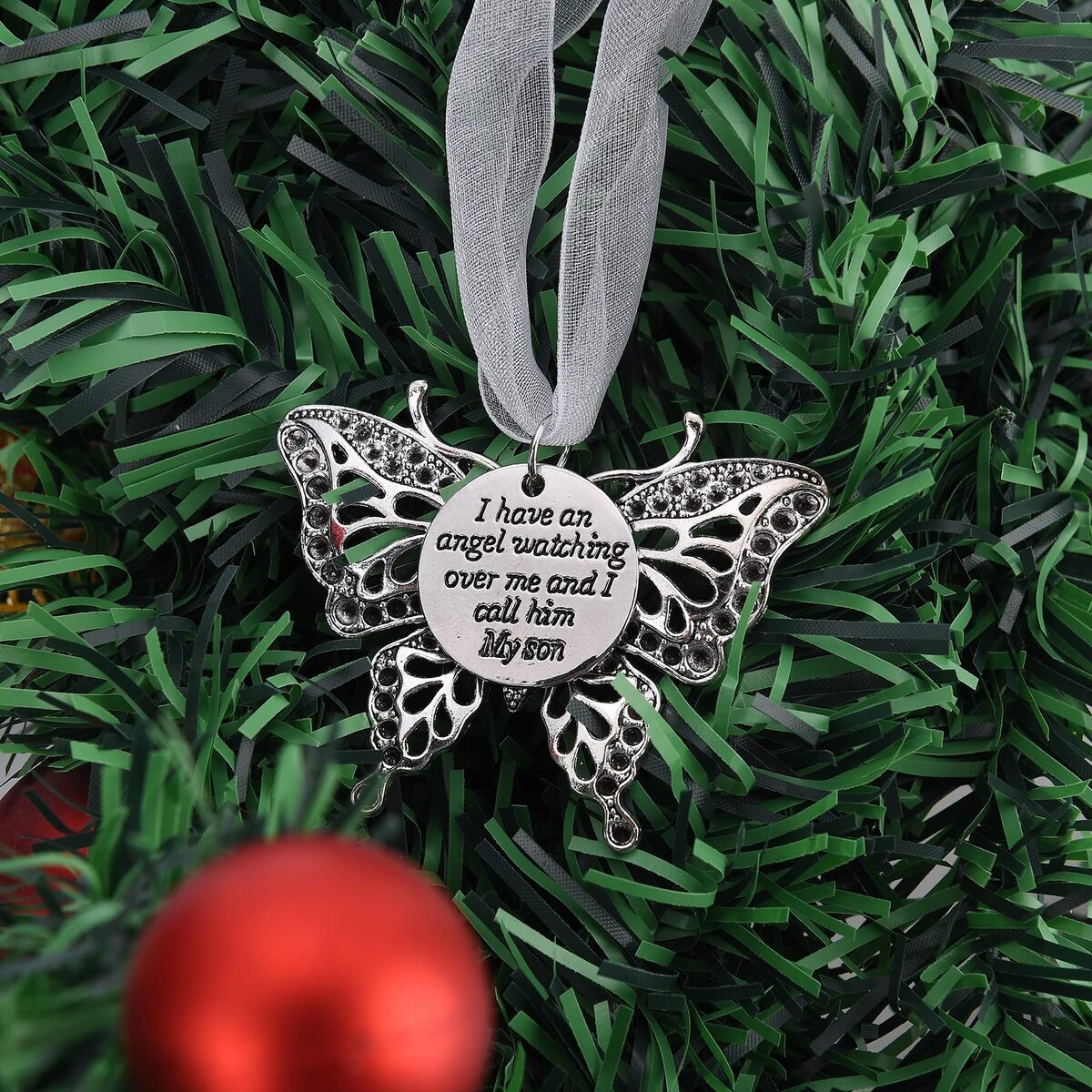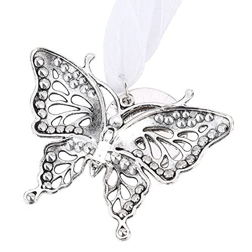 QSDGFH 5pcs Memorial Christmas Tree Ornament, Alloy Butterfly with Ribbon Rememb