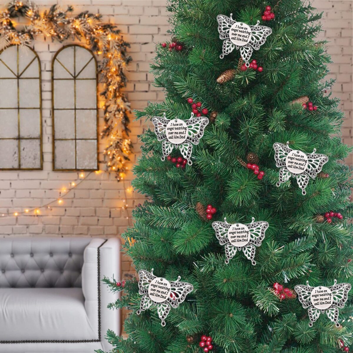 QSDGFH 5pcs Memorial Christmas Tree Ornament, Alloy Butterfly with Ribbon Rememb