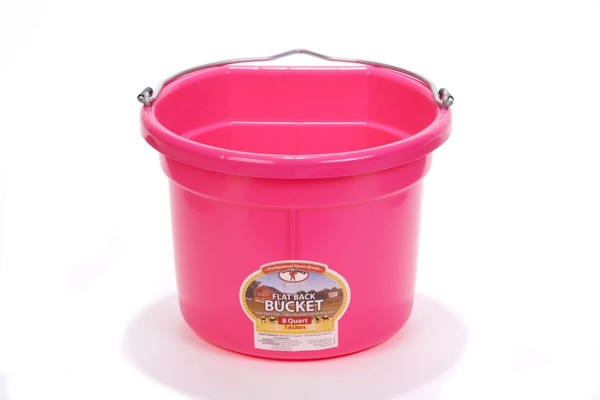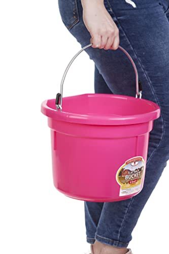 Little Giant® Flat Back Plastic Animal Feed Bucket | Horse Stall Bucket with Met