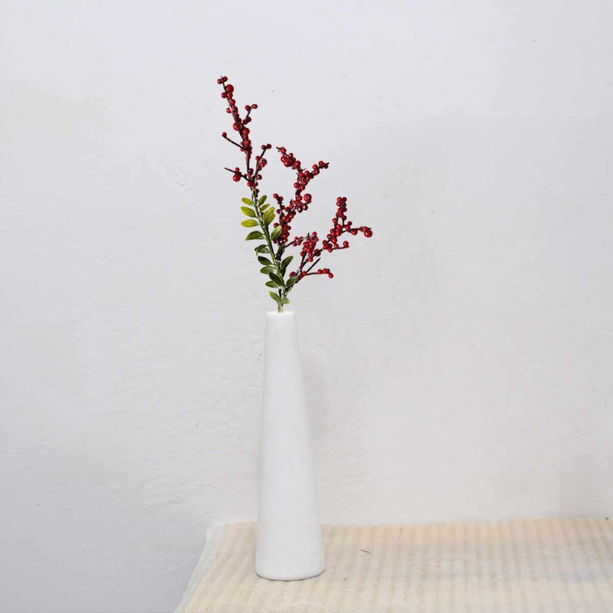Bullet point: IDEAL FOR VASE: Our berry branches in lush sustain the sunlight realistic shape, texture and color. Easy to rearrange/adjust branches. Very life-like. Its a very good faux plants for vases and very suitable for inserting in a suitable vase. (The Price was Not Included Vase). It is simple to get good effect.