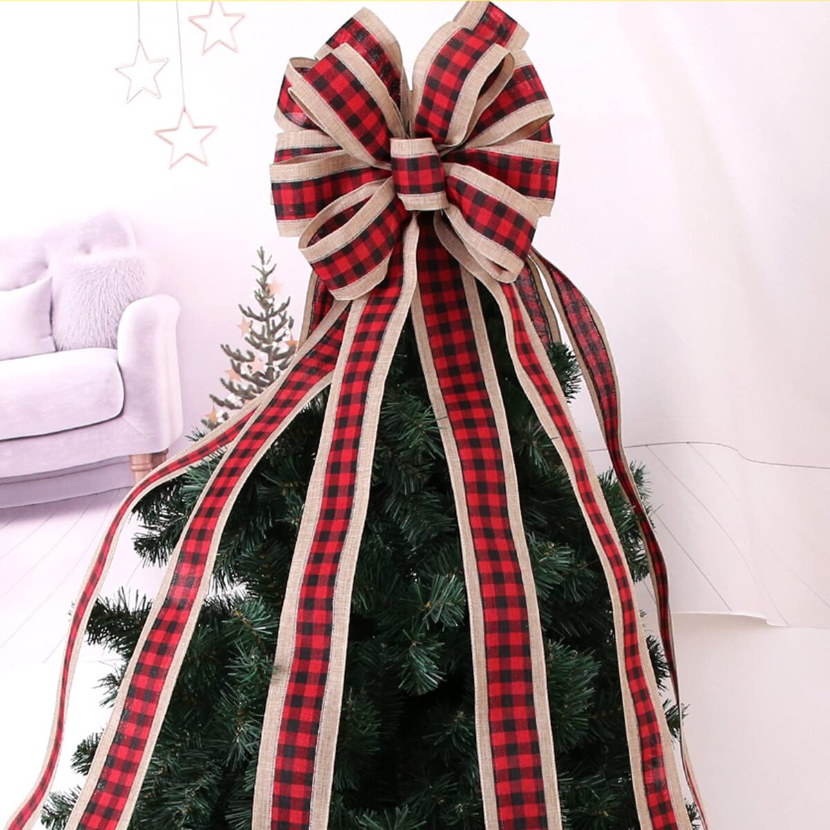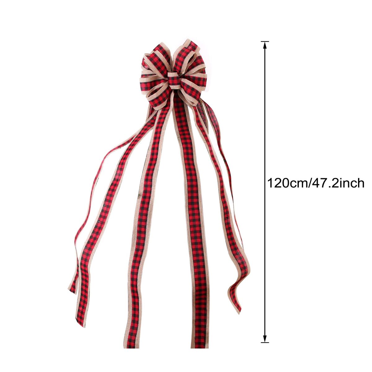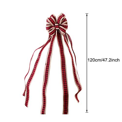 QSDGFH Christmas Bows Tree Topper, 47.2in Red/White Buffalo Plaid Bow Linen Holi